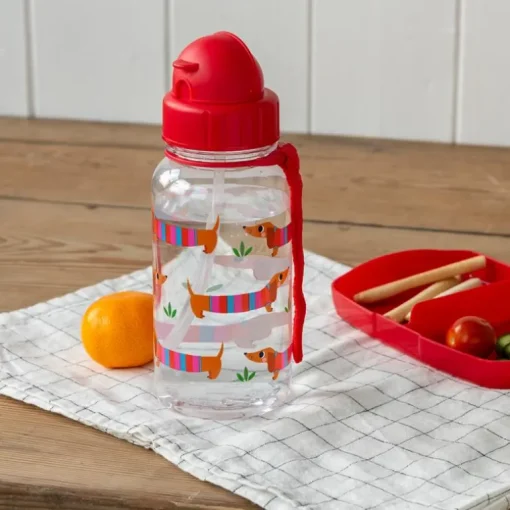 The perfect lunchtime accessory for dog-loving children. Decorated with adorable sausage dogs, this reusable water bottle has an integrated straw for mess-free sipping and a loop handle for easy carrying.