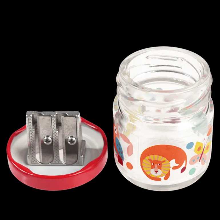 Stationery-lovers can display this unique and colourful pencil sharpener on their desk with pride! This glass jar pencil sharpener features Rex London’s Wild Wonders animal design, and has two holes for different-sized pencils.