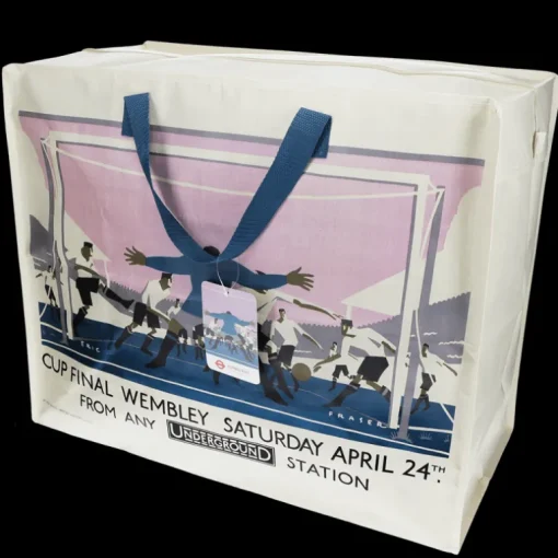 Our classic jumbo bag, featuring a reproduction print of vintage London Underground poster “Cup Final Wembley Saturday April 24th”. The poster, commissioned by the Underground Electric Railway Company in 1926, for the football Cup Final at Wembley Stadium on 24th April that year, was designed by artist Eric George Fraser.