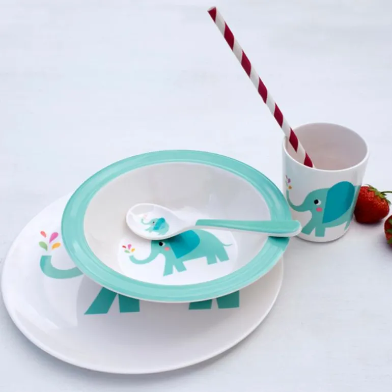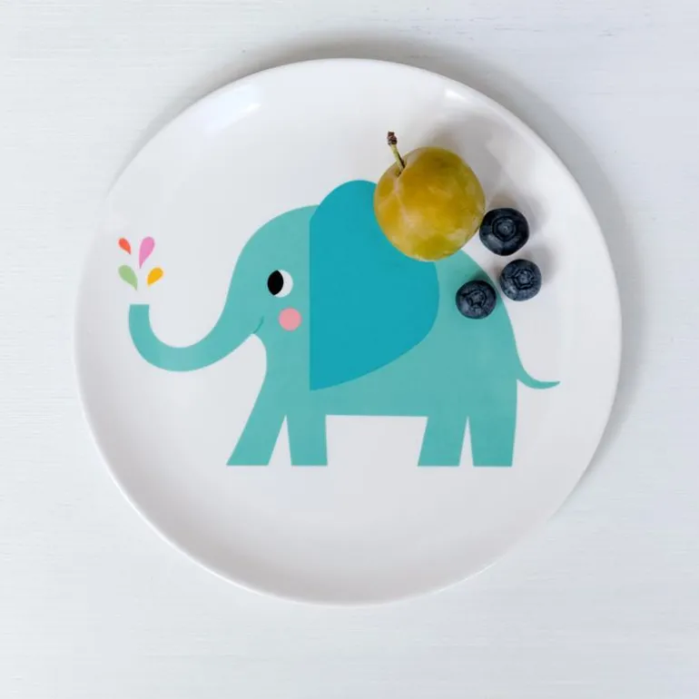 Children’s Elvis the Elephant melamine plastic plate, perfect for lunches and picnics! Matching spoon, beaker and bowl available.