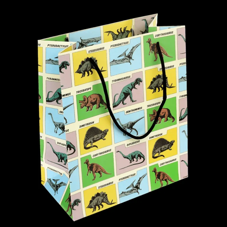 Our Prehistoric Land gift bag includes five different dinosaur illustrations with their names, perfect for dinosaur megafans! Also available in a larger size.