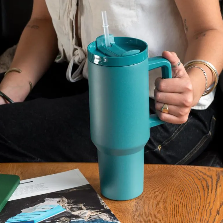Take your favourite drinks anywhere with this petrol blue travel tumbler. The stainless steel design keeps drinks cool for up to 20 hours, and the 1.2Ltr capacity reduces the need for a refill. Durable, spill-resistant, and easy to clean, it’s the ideal companion for travel or work.