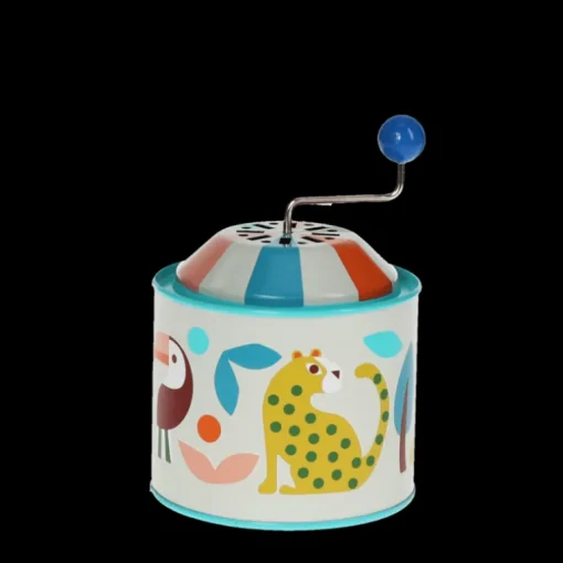Give a traditional gift with this classic tin music box, featuring the bright animals from our Wild Wonders collection. Children will love turning the handle to play a classic nursery rhyme.
