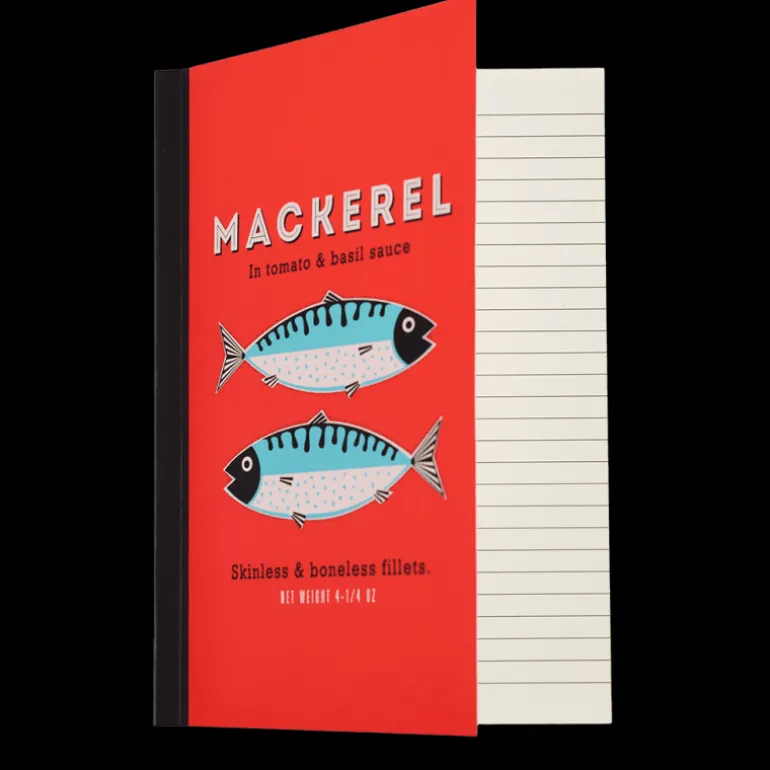 Add some retro flavour to your stationery collection with this unusual A5 lined notebook, featuring a red Mackerel print inspired by vintage food packaging.