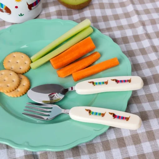 Let the kids take their favourite dogs with them everywhere they go! This two-piece stainless steel cutlery set includes a spoon and fork and comes inside a handy little carry case, perfect for picnics and travelling.