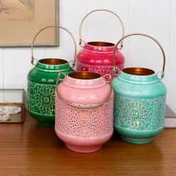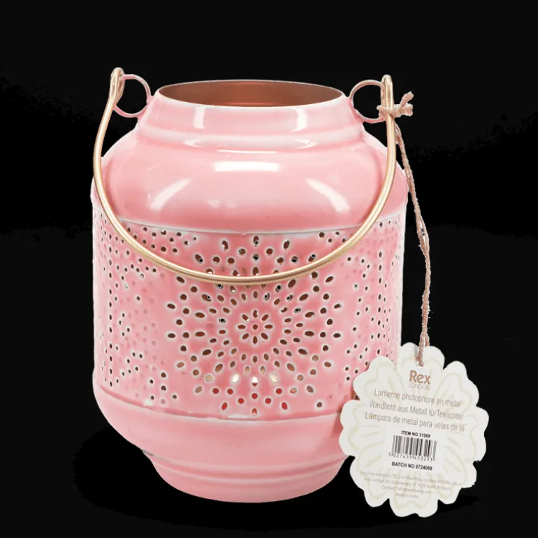 This tealight lantern in pink adds a touch of elegance to your home decor. Suitable for both indoor and outdoor use, its unique cut-out design will illuminate your space with stunning patterns of light.