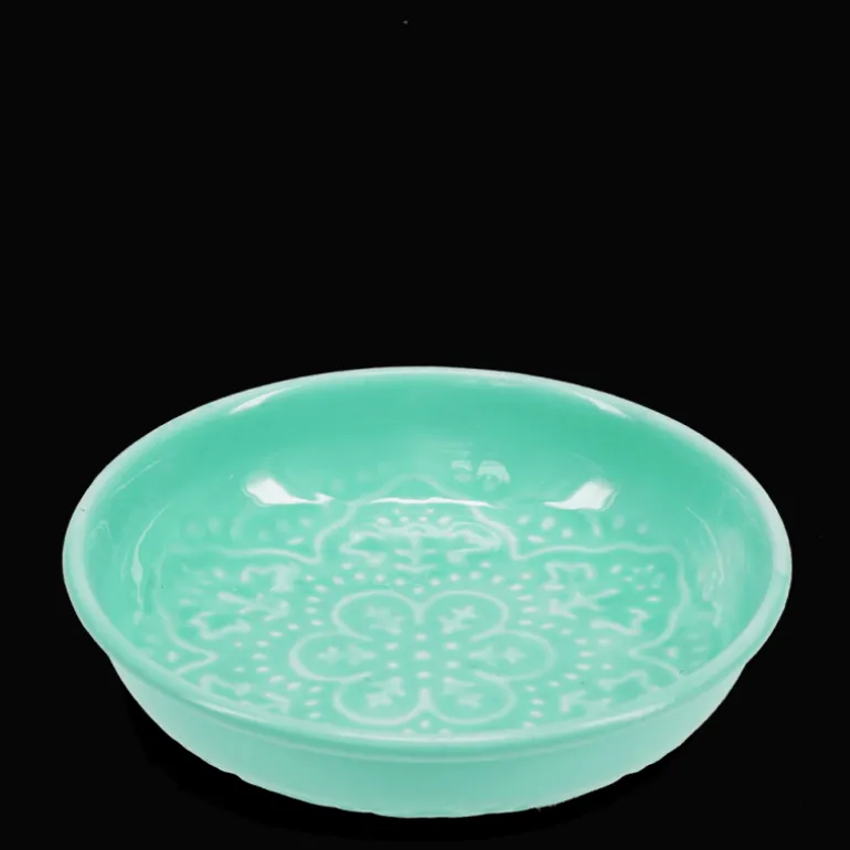 Add a splash of colour to your home with this aqua enamel trinket dish. Perfect for holding jewellery, keys, or loose change, its glossy finish and elegant pattern makes for a chic addition to any dresser or bedside table.