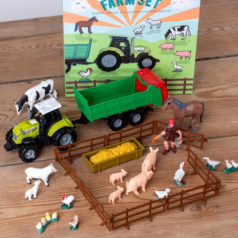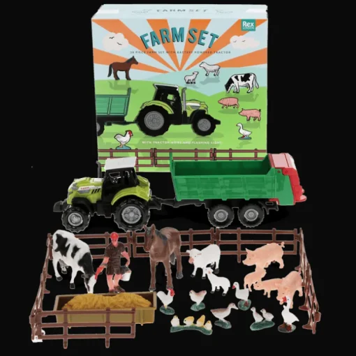Discover endless fun with this Farm Playset! This set includes a charming tractor, a range of adorable animals, and a friendly farmer to help run the farm, with realistic details that bring the scene to life.