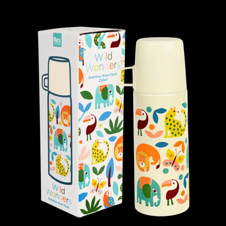 This stainless steel vacuum flask, with combined plastic cup and lid, will keep your drinks warm whilst traveling, picnicking or commuting. Featuring our colourful Wild Wonders print, this flask is a fun way to enjoy your favourite hot drinks without single-use cups.