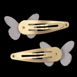 Add some sparkle to any hair style with this set of gold Fairies in the Garden hair clips. These glittery butterfly hair clips are a magical fashion accessory for toddlers and tweens.