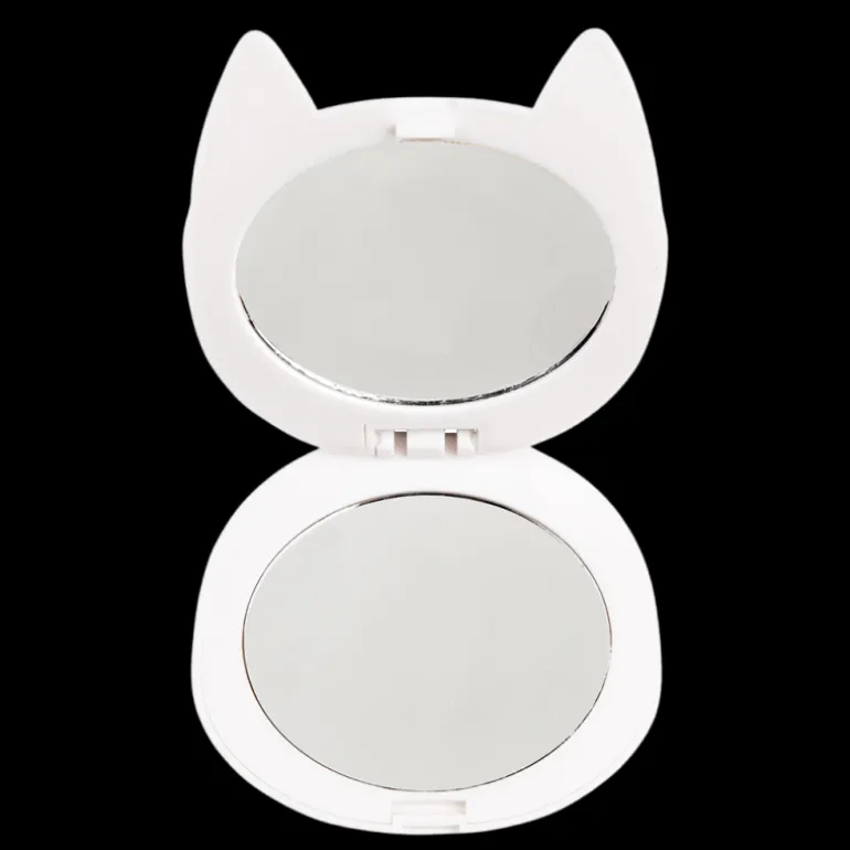 A sweet accessory for cat-lovers, this Cookie the Cat pocket mirror is made of sturdy plastic and features two mirrors. An ideal size for pockets and handbags. Contains two different magnifications.