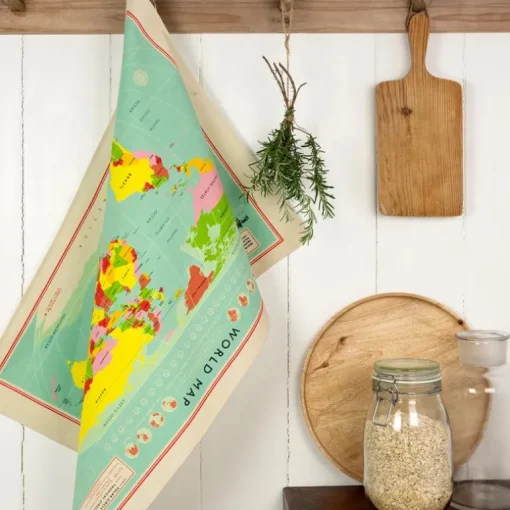 Explore the world from the comfort of your kitchen! This unique World Map tea towel is made from 100% cotton and is a great finishing touch for any kitchen.